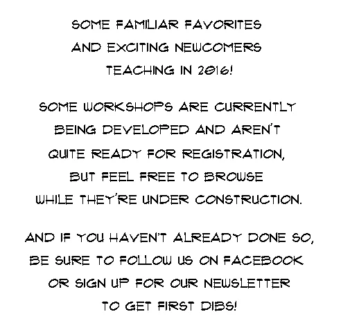 $0.00 ONE-OF-A-KIND ALTERATIONS - 2 Days of Visual Journaling with Orly Avineri $300.00 ONE-OF-A-KIND Wearable Book with Leslie Marsh $195.00 SOLD Introduction to Watercolor: FUN-damentals with Pamela Harnois $140.00 ONE-OF-A-KIND TWO DAYS OF POLYMER CLAY with Dayle Doroshow $280.00 ONE-OF-A-KIND Beginning Marbling with Barb Skoog $165.00 ONE-OF-A-KIND FABRIC BOOK with Kate Thompson $0.00 ONE-OF-A-KIND MIXED MEDIA COLLAGE with Crystal Neubauer $0.00 ONE-OF-A-KIND HAMMERED AND SOLDERED CUFF WITH ETCHING with Riki Schumacher $0.00 ONE-OF-A-KIND